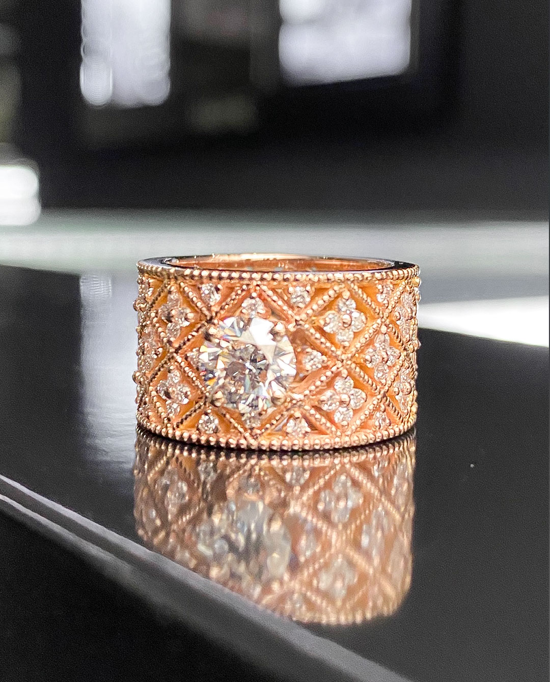 Nos diamants sont naturels, soigneusement sélectionnés et sourcés d’origine éthique. À partir de 0,30 carat, ils sont certifiés GIA, conformément à la législation en vigueur. Chaque bague peut être personnalisée.